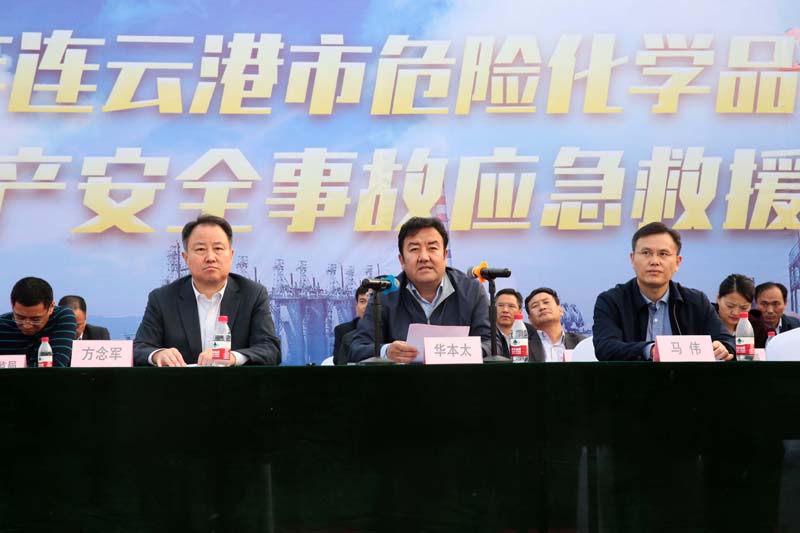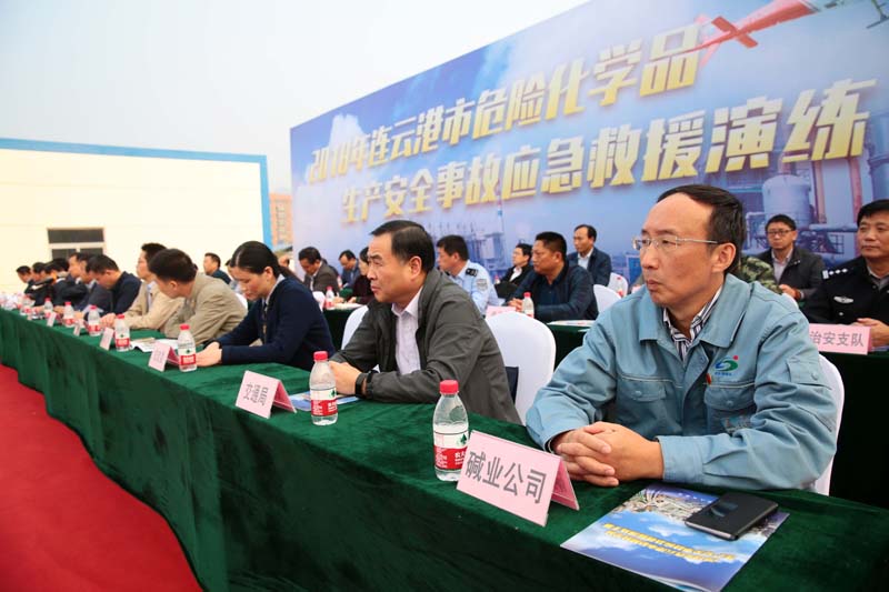 10月24日下午,2018年連云港市危險化學(xué)品生產(chǎn)安全事故應(yīng)急救援演練在堿業(yè)公司舉行。連云港市副市長華本太觀摩了應(yīng)急演練。市安監(jiān)局、市公安局、市消防支隊、市氣象局、環(huán)保局、堿業(yè)公司等部門和單位參加了此次演練。