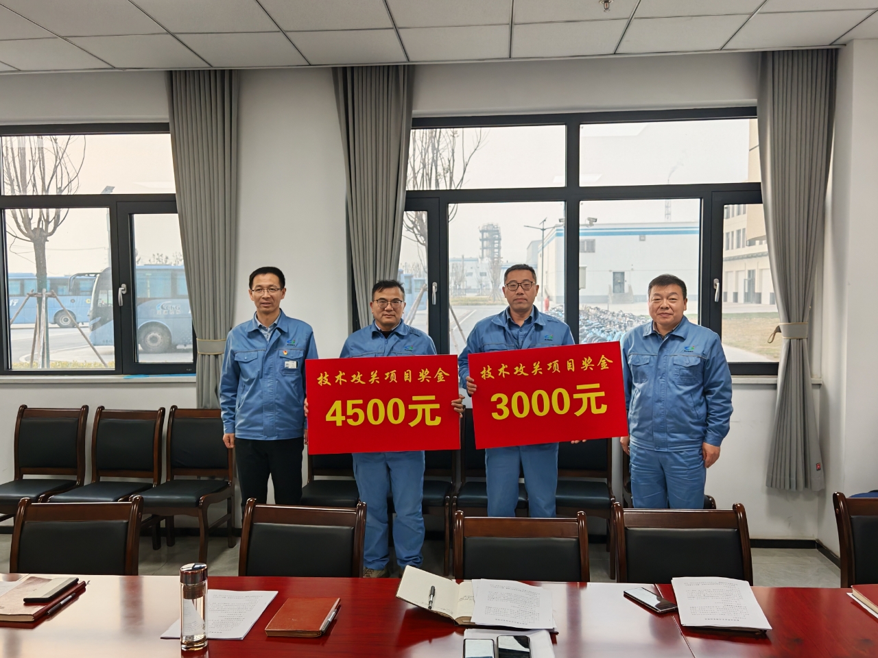 為表彰先進(jìn)、樹(shù)立榜樣,進(jìn)一步激發(fā)全體員工創(chuàng)新創(chuàng)效的積極性與主動(dòng)性,12月19日下午,公司對(duì)在自主攻關(guān)優(yōu)化項(xiàng)目中取得突出成績(jī)的孔祥昶項(xiàng)目團(tuán)隊(duì)和李征徐項(xiàng)目團(tuán)隊(duì)進(jìn)行表彰。公司黨委書(shū)記、董事長(zhǎng)姜自成,公司總經(jīng)理、黨委副書(shū)記、副董事長(zhǎng)延立強(qiáng)為其頒發(fā)了技術(shù)攻關(guān)項(xiàng)目獎(jiǎng)金。