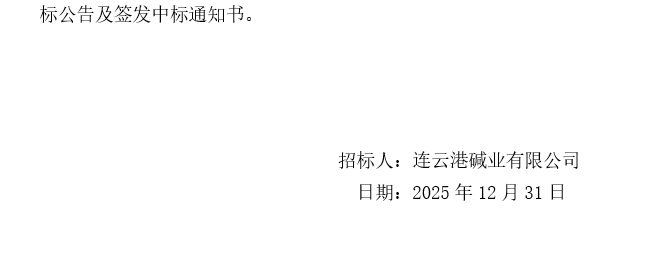連云港堿業(yè)有限公司外貿(mào)散雜貨貨運(yùn)代理服務(wù)商招標(biāo)中標(biāo)候選人公示