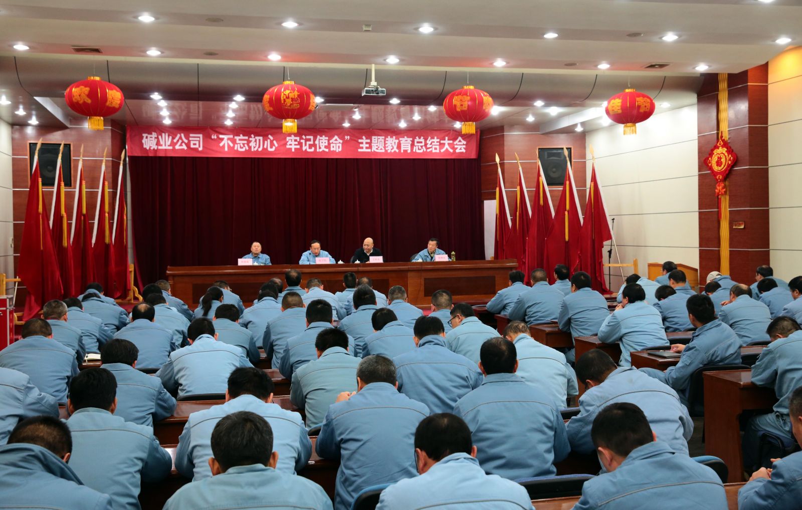 王懷東代表第十指導組對堿業(yè)公司主題教育開展以來所取得顯著成效予以充分肯定,并就落實主題教育各項任務提出四點意見。