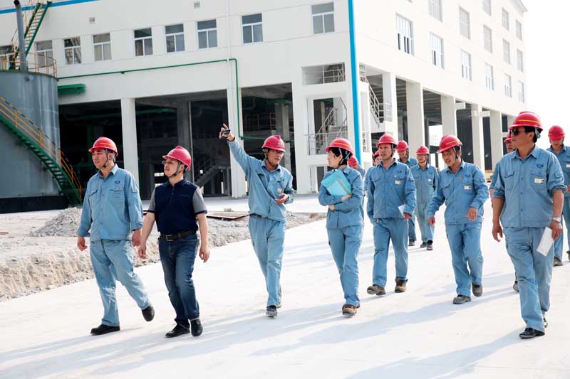 會(huì)后,車(chē)間領(lǐng)導(dǎo)親自陪同與會(huì)人員參觀了新的壓濾機(jī)廠房。