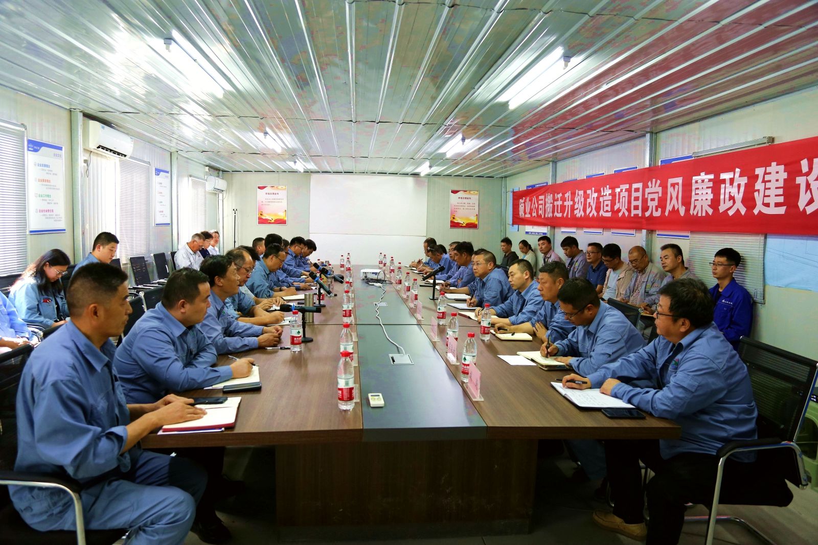 為深入推進全面從嚴治黨,進一步加強公司搬遷升級改造項目黨風廉政建設,8月16日,公司黨委組織召開搬遷升級改造項目黨風廉政建設專題會議。會議特邀市紀委監(jiān)委第八監(jiān)督檢查室主任霍連升參會并講話。公司領導班子、項目部各部門負責人和參建單位項目經(jīng)理共計53人參加了會議。