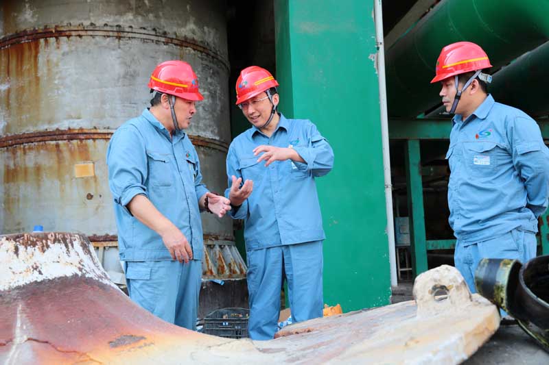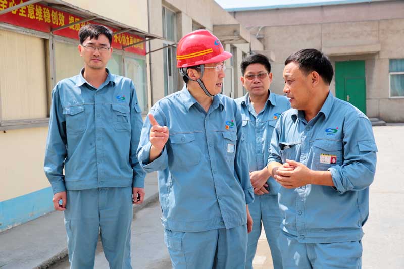 在重堿車(chē)間現(xiàn)場(chǎng),張衛(wèi)民囑咐車(chē)間負(fù)責(zé)人,在高溫時(shí)節(jié)不僅要抓好生產(chǎn)運(yùn)行,更要注意酷暑天氣下安全管理和員工的身體健康。