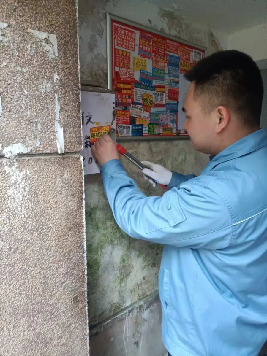 生活中,隨處可見的小廣告成為社區(qū)的“牛皮蘚”,很大程度上影響了社區(qū)的美觀。而氣化中心的青年職工們,化身“墻面清理大師”,前往堿廠生活區(qū)的路口、樓道清理一處處小廣告。他們心靈手巧、嚴(yán)謹(jǐn)細(xì)致,不放過每一個角落。青年員工們拿起鏟子,親手揭下一處處廣告條,收獲滿滿成就感的同時(shí),也為堿廠生活區(qū)和居民們帶來了整潔清爽的生活氛圍。