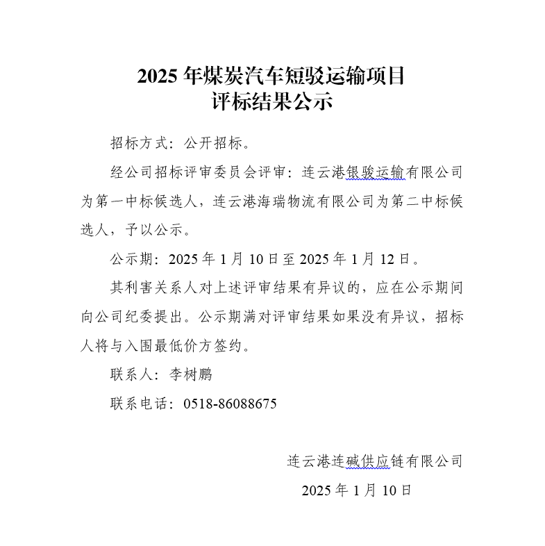 2025年煤炭汽車短駁運(yùn)輸項(xiàng)目評(píng)標(biāo)結(jié)果公示