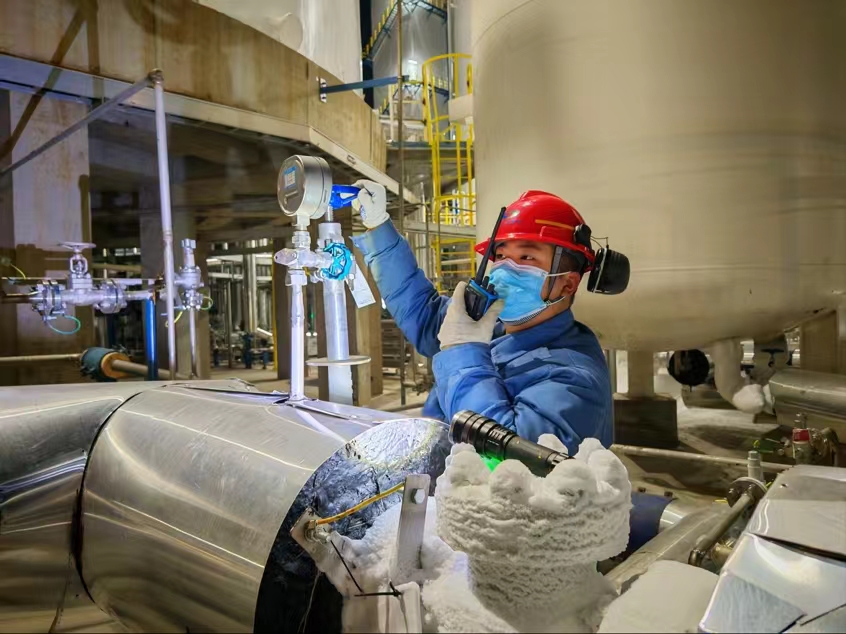 “春節(jié)期間,我們一定堅(jiān)守崗位,保持最佳狀態(tài),確保各項(xiàng)工作有序推進(jìn)。” 空分車間員工堅(jiān)定地說(shuō)道。“春節(jié)期間更要打起十二分精神,不能有絲毫懈怠。” 他們密切關(guān)注著設(shè)備的運(yùn)行參數(shù),仔細(xì)記錄著每一個(gè)數(shù)據(jù)。“走,除夕夜檢查不能停,一定要確保萬(wàn)無(wú)一失。”夜色中,他們頂著瑟瑟寒風(fēng)認(rèn)真巡檢,檢查空壓機(jī)運(yùn)行狀態(tài),保障儀表氣穩(wěn)定供應(yīng)。為了確保后序工段氮?dú)獯祾吆兔芊鈿夤?yīng),空分車間定時(shí)對(duì)真空液氮儲(chǔ)槽進(jìn)行充液,為氮?dú)夤?yīng)保駕護(hù)航。